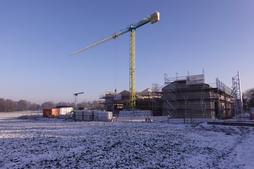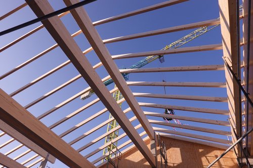 Das Gebäude verspricht schön zu werden, die hölzerne Dachkonstruktion und die hölzernen mit Mineralwolle gedämmten Giebelplatten sind Ergebnis soliden norddeutschen Handwerks.